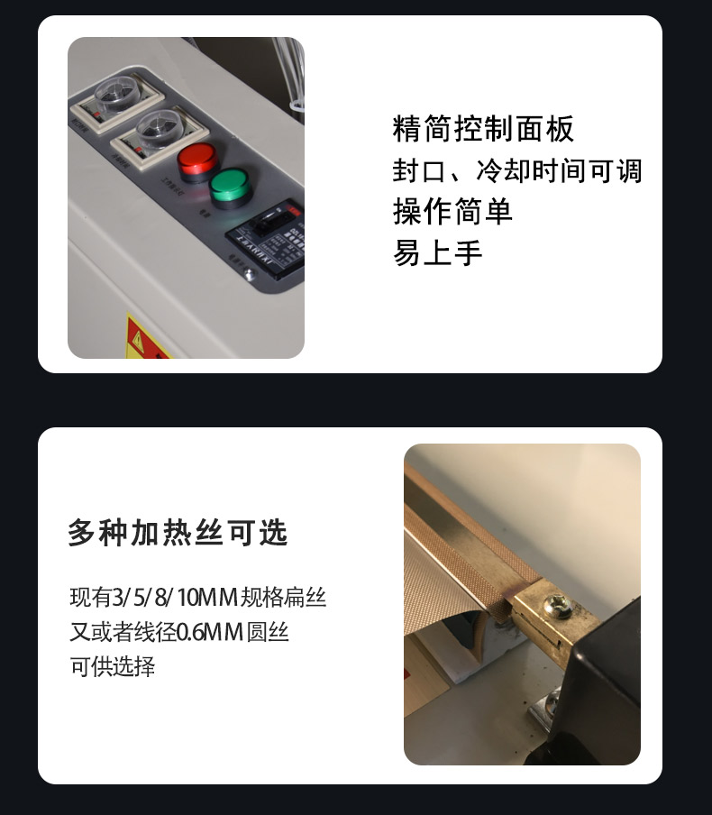 - 連續(xù)作業(yè)能力:采用先進的氣動控制系統(tǒng)和水冷循環(huán)系統(tǒng),能夠實現連續(xù)不間斷的封切操作。通過自動化的送料和封口流程,產品可以源源不斷地進入封口區(qū)域,在連續(xù)的運動過程中完成封口和切斷工序,極大地提高了生產效率,避免了因間歇操作導致的時間浪費。