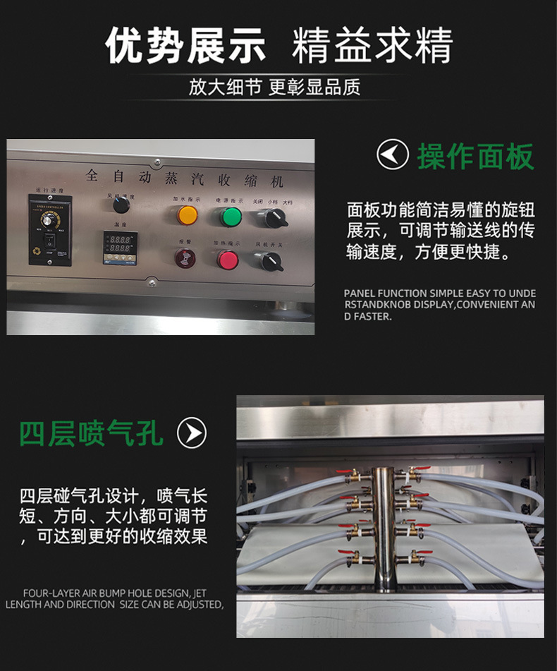 收縮膜的材質對全自動一體蒸汽收縮機的包裝效果在收縮性能、透明度、強度、耐溫性等方面都有重要影響,具體如下: