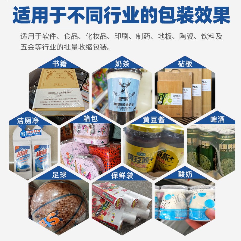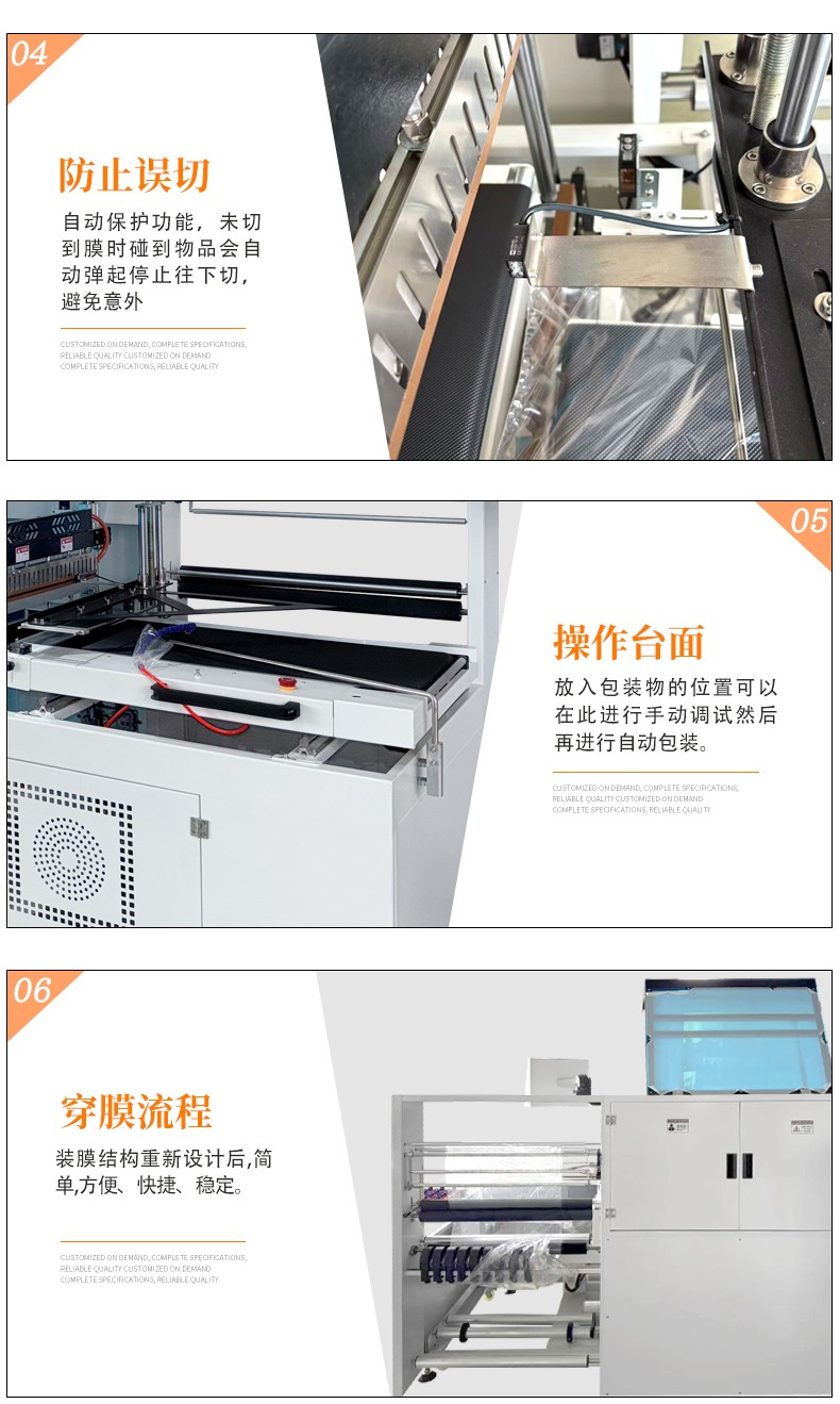 - 自動(dòng)化程度高:配備 PLC 控制系統(tǒng)和光電感應(yīng)裝置,可自動(dòng)完成送膜、封口、熱收縮、出料全流程,無(wú)需人工干預(yù)。