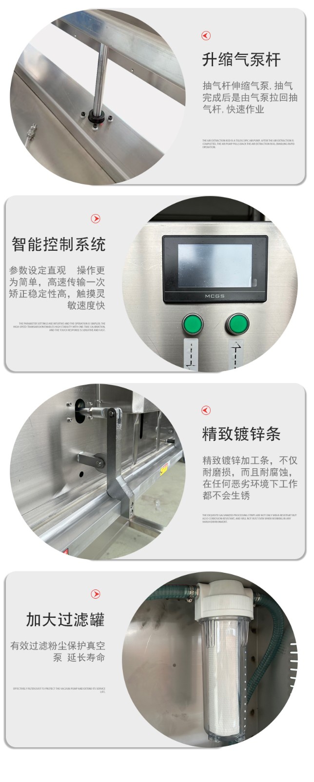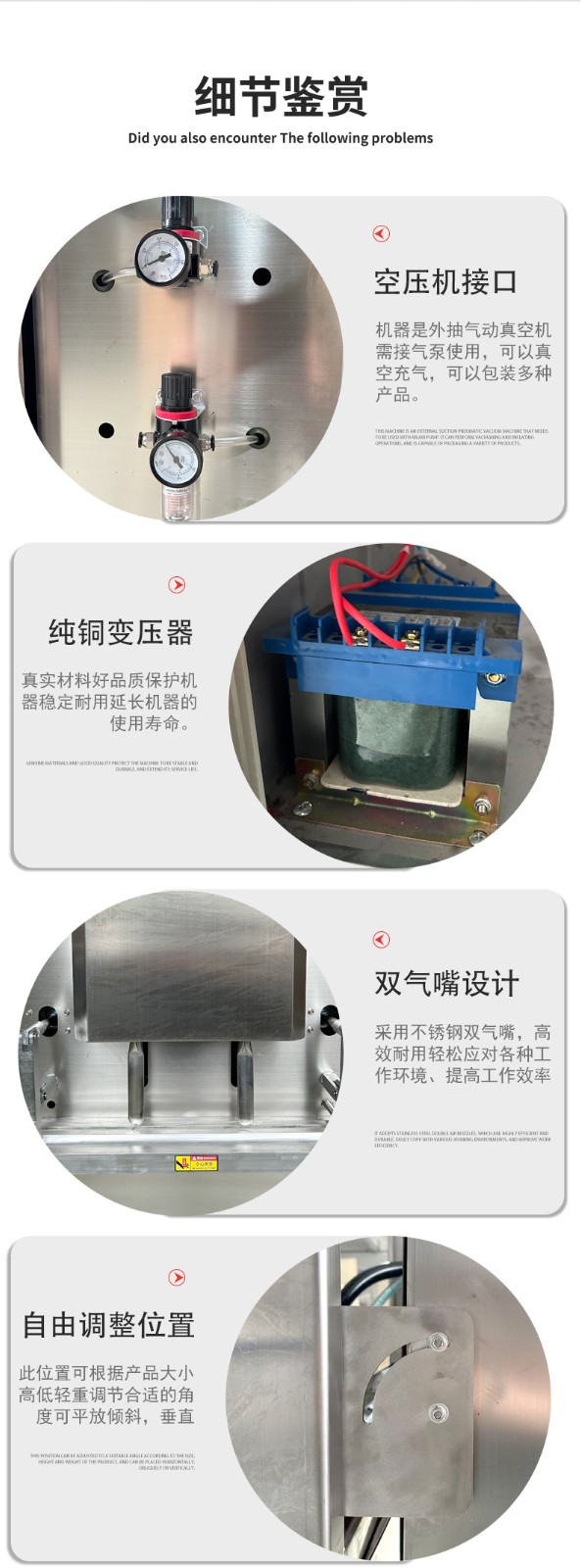 - 五金機械:小型機械零件(如軸承、齒輪組)、異形金屬工具,可根據零件高度調整工作臺,避免包裝時變形。