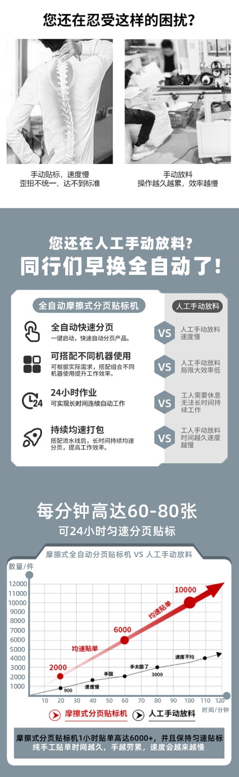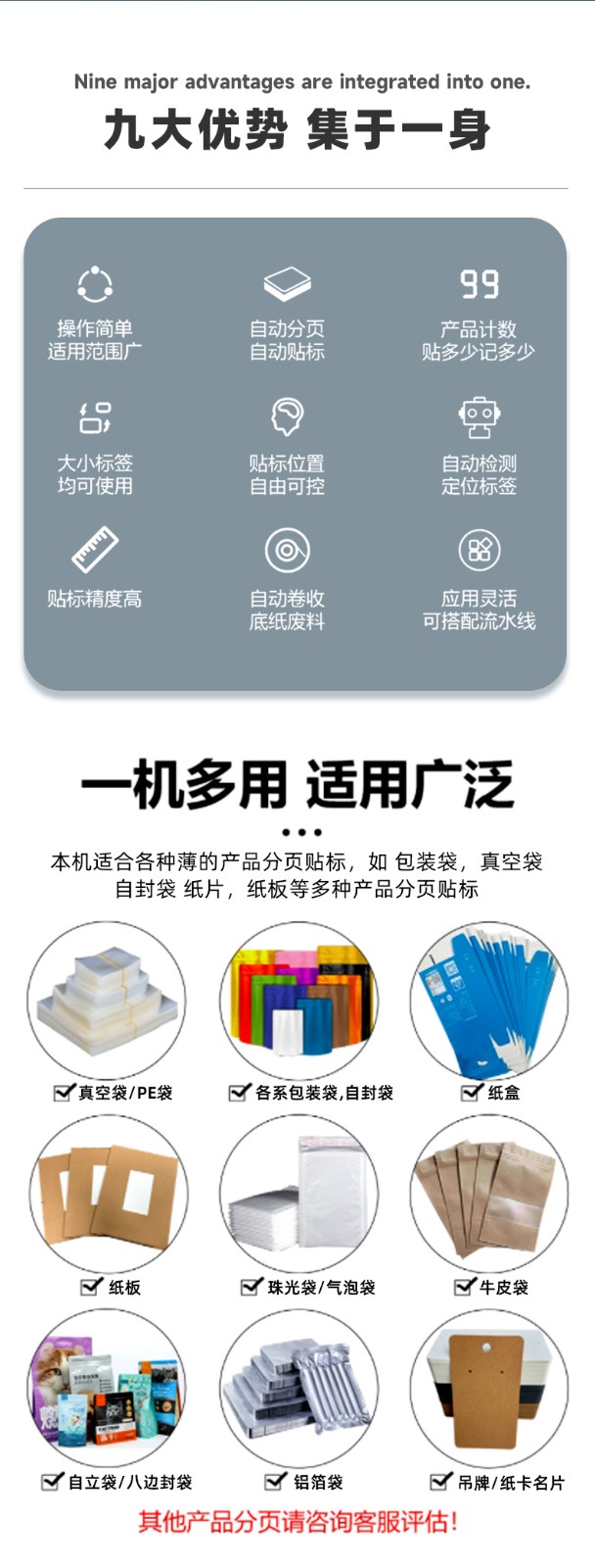 省人工成本:自動(dòng)完成分頁(yè)、貼標(biāo)、覆標(biāo)全流程,1 臺(tái)設(shè)備可替代 3-5 名人工,且避免人工操作誤差。