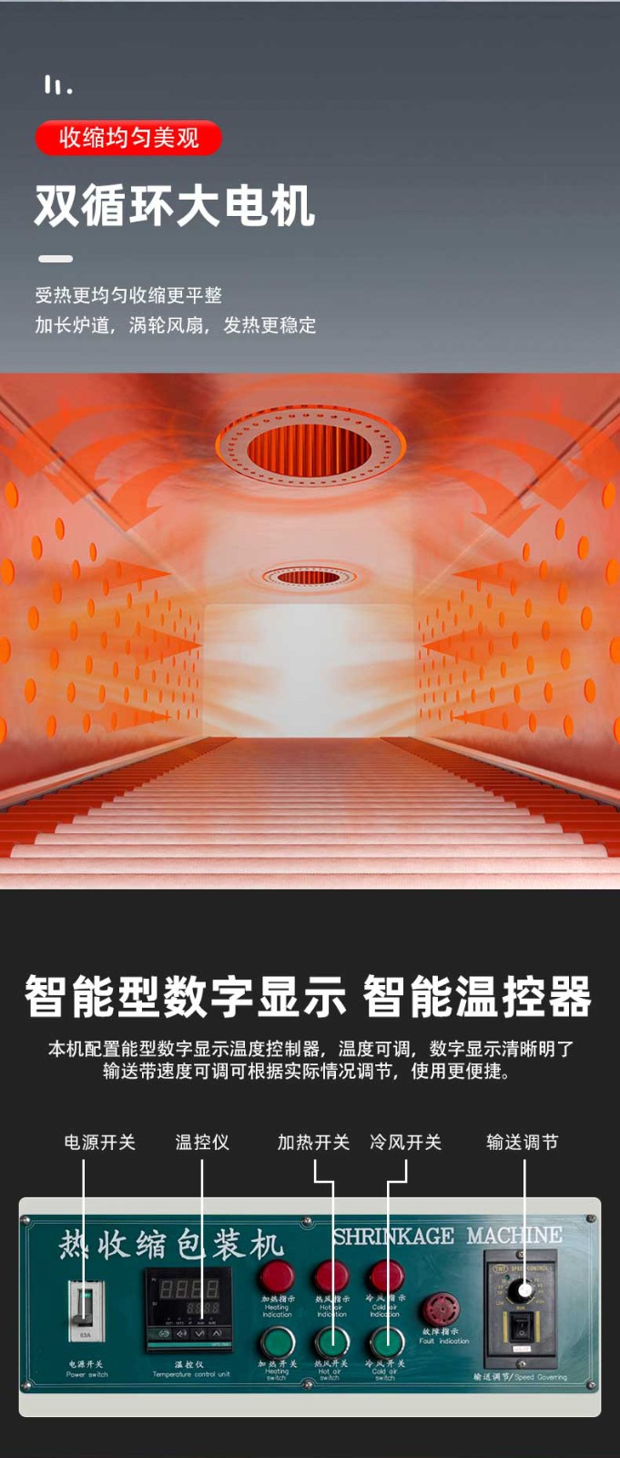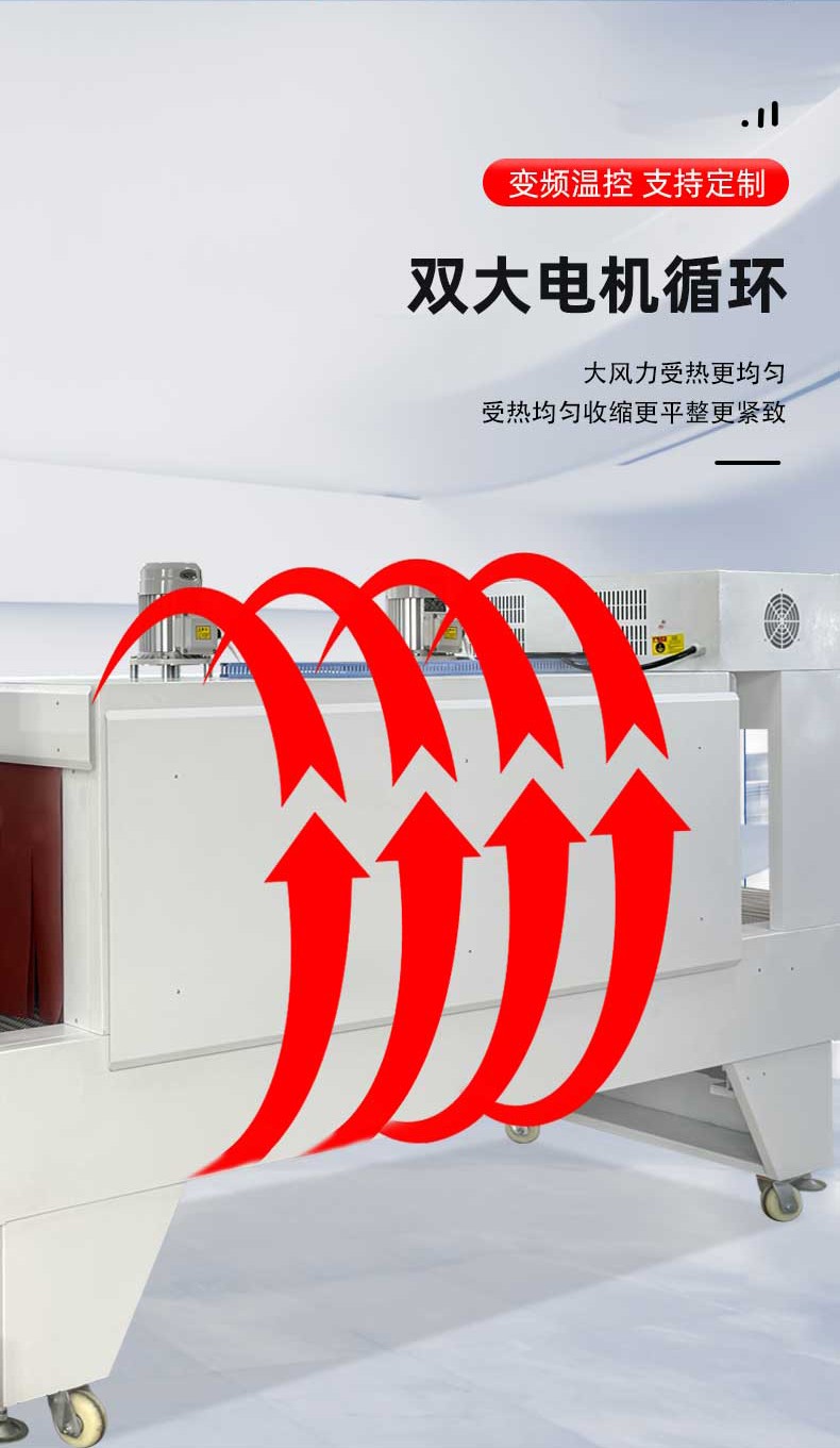 袖口式封切熱收縮包裝機(jī)憑借 高效密封、防塵防潮、貼合定型、便于堆疊運(yùn)輸 的核心優(yōu)勢(shì),廣泛應(yīng)用于多行業(yè)的標(biāo)準(zhǔn)化包裝需求,尤其適配批量生產(chǎn)的規(guī)則 / 異形產(chǎn)品組合包裝。 一、食品飲料行業(yè)(最核心應(yīng)用領(lǐng)域) 瓶裝 / 罐裝產(chǎn)品組合包裝 礦泉水、啤酒、飲料、涼茶等 多瓶捆綁包裝(如 6 瓶 / 12 瓶 / 24 瓶組),無(wú)底托收縮膜直接包裹,替代傳統(tǒng)紙箱 / 膠帶,降低包裝成本 30%+,且透明膜可展示產(chǎn)品品牌; 罐頭、醬料瓶、食用油桶等 單瓶 / 多瓶密封包裝,防止運(yùn)輸過(guò)程中泄漏、氧化,延長(zhǎng)保質(zhì)期(尤其適用于含油脂、易受潮食品)。 零食與烘焙產(chǎn)品包裝 餅干盒、薯片罐、面包禮盒等 多盒組合包裝(如 3 盒 / 6 盒套裝),收縮膜緊密貼合,避免禮盒散開(kāi),同時(shí)防塵防潮,提升禮盒檔次; 冷凍食品(如速凍水餃、湯圓)的 外箱收縮包裝,強(qiáng)化箱體密封性,防止冷鏈運(yùn)輸中受潮解凍。 符合食品級(jí)包裝標(biāo)準(zhǔn)(適配 PE/POF 無(wú)毒膜),包裝速度快(8-15 包 / 分),適配生產(chǎn)線(xiàn)連續(xù)作業(yè),同時(shí)透明包裝便于終端貨架展示。 高效量產(chǎn),適配規(guī)模化生產(chǎn) 全自動(dòng)機(jī)型包裝速度達(dá) 8-25 包 / 分鐘(單排)、15-40 包 / 分鐘(多排),支持 24 小時(shí)連續(xù)作業(yè),匹配食品飲料、日化等行業(yè)生產(chǎn)線(xiàn)節(jié)拍; 換產(chǎn)靈活,參數(shù)化存儲(chǔ) 100 + 組產(chǎn)品規(guī)格,切換僅需 2-5 分鐘,無(wú)需拆卸機(jī)械部件。 包裝效果優(yōu)質(zhì),防護(hù)與展示兼具 熱收縮膜緊密貼合產(chǎn)品輪廓,形成密封、防潮、防塵、防刮的立體包裝,降低運(yùn)輸損耗率至 0.5% 以下; 支持透明膜 / 彩印膜包裝,透明膜可展示產(chǎn)品細(xì)節(jié),彩印膜可印刷品牌 LOGO 與促銷(xiāo)信息,兼顧防護(hù)與品牌營(yíng)銷(xiāo)。 成本可控,降本增效顯著 無(wú)底托包裝設(shè)計(jì)替代傳統(tǒng)紙箱、膠帶,包裝材料成本降低 30%-50%,同時(shí)節(jié)省倉(cāng)儲(chǔ)與運(yùn)輸空間 40%; 采用紅外加熱或石英管加熱技術(shù),比傳統(tǒng)電熱絲節(jié)能 30%-50%,待機(jī)自動(dòng)降功率,長(zhǎng)期運(yùn)行成本更低; 全自動(dòng)機(jī)型僅需 1 人巡檢,降低人工成本 80%,避免人工操作誤差。 兼容性強(qiáng),適配多場(chǎng)景需求 可包裝方形、圓形、異形等多種形態(tài)產(chǎn)品,支持單件 / 多件組合包裝,產(chǎn)品尺寸覆蓋 50mm×30mm×20mm 至 800mm×600mm×500mm(可定制更大規(guī)格); 適配 PE、POF、PVC 等多種熱收縮膜,滿(mǎn)足食品級(jí)(FDA/ROHS)、醫(yī)藥級(jí)(GMP)、工業(yè)防靜電等不同行業(yè)標(biāo)準(zhǔn)。 智能化操作,易上手易維護(hù) PLC 觸控屏可視化操作,參數(shù)設(shè)置直觀,普通工人 1-2 小時(shí)即可獨(dú)立操作,支持故障自動(dòng)報(bào)警與修復(fù)提示; 模塊化結(jié)構(gòu)設(shè)計(jì),封刀、加熱管等易損件更換便捷,日常維護(hù)僅需清潔、緊固,維護(hù)成本降低 40%。 環(huán)保合規(guī),符合綠色生產(chǎn)趨勢(shì) 采用可回收、無(wú)毒環(huán)保膜材,無(wú)粉塵、無(wú)異味排放,符合全球綠色包裝政策; 減少紙箱、膠帶等不可降解材料使用,降低快遞垃圾與資源浪費(fèi),適配電商、物流行業(yè)環(huán)保要求。