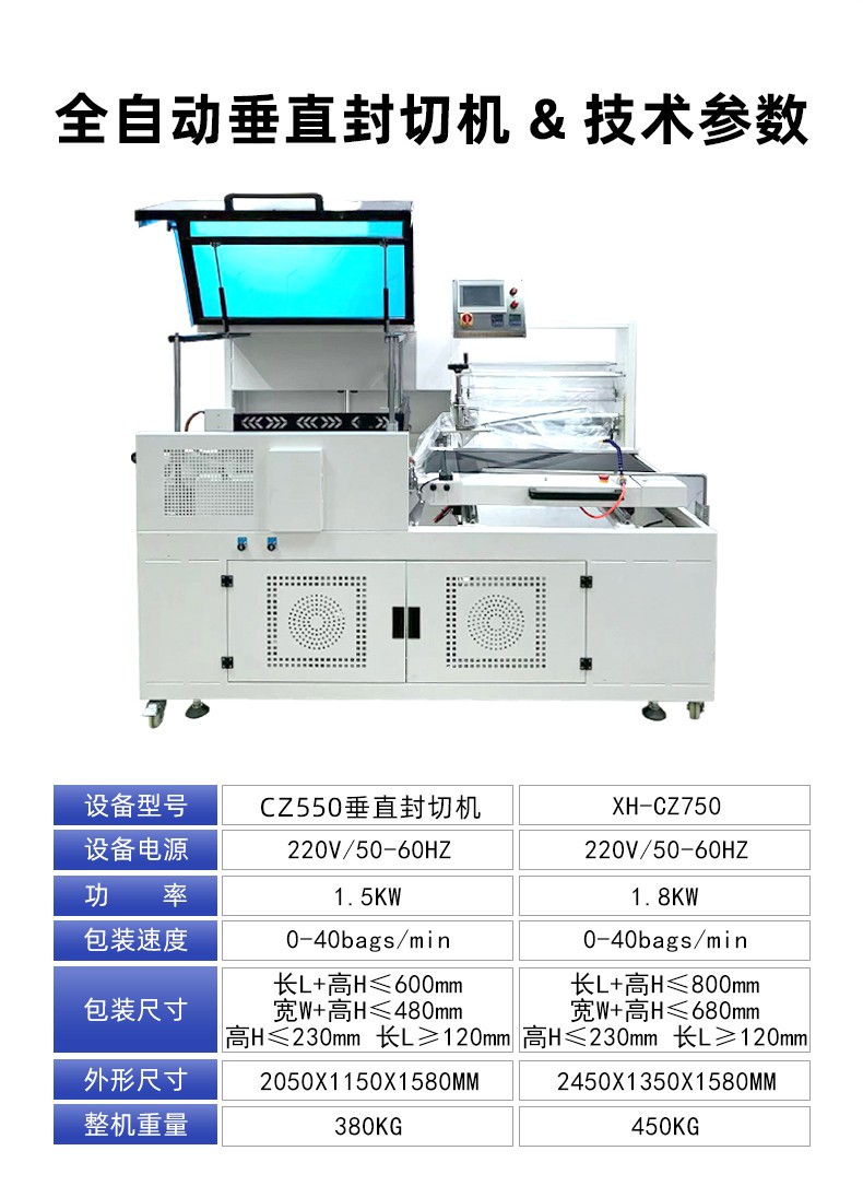 全自動垂直封切機采用上下垂直驅動封切結構,封口接觸面受力均勻,能有效解決傳統 L 型封切機常見的薄膜褶皺、封口線偏移、邊角不平整等問題。