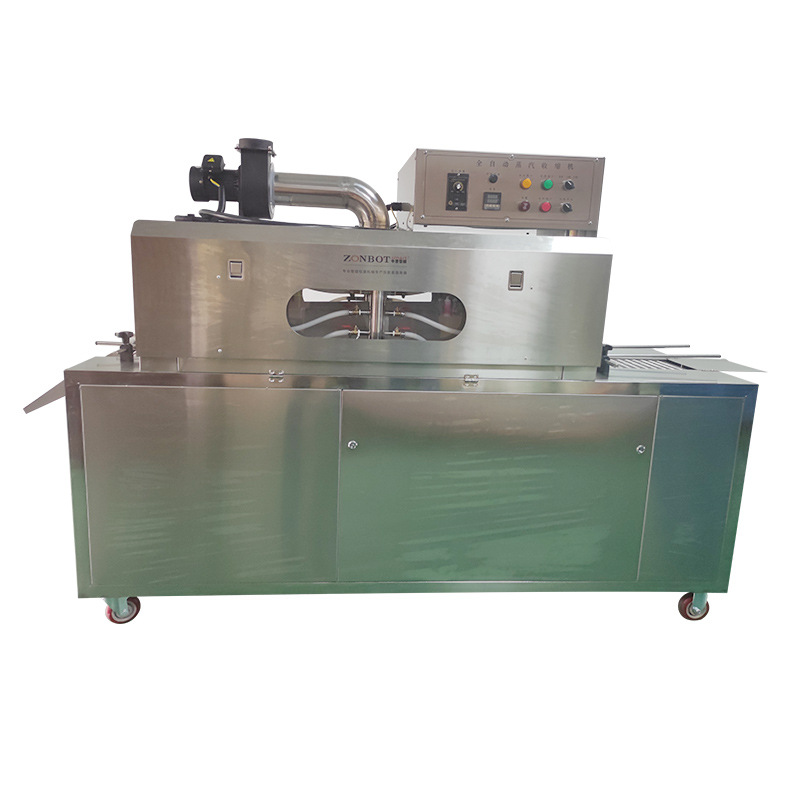 收縮階段:包裝好的產品接著被輸送到蒸汽收縮部分的收縮通道入口。此時,蒸汽發生系統已經產生了合適的蒸汽,蒸汽通過噴頭均勻地噴灑在產品的包裝薄膜上。包裝薄膜在蒸汽的熱量作用下開始收縮,緊密貼合在產品表面。產品在輸送系統的推動下繼續在收縮通道內移動,保證薄膜各個部分都能充分收縮。收縮完成后,通風口排出蒸汽,產品在外界環境下冷卻定型,最終完成蒸汽收縮包裝,從出口輸送帶送出一體機。