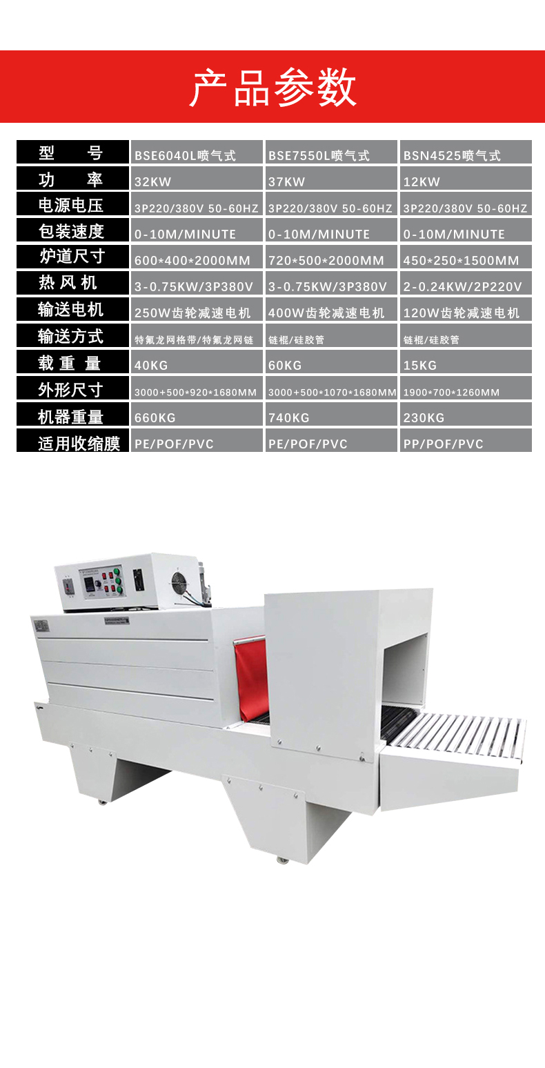 - 高效節(jié)能:通過合理的加熱系統(tǒng)設(shè)計和保溫隔熱措施,噴氣式熱收縮機在保證包裝效果的同時,能夠有效利用能源。與一些傳統(tǒng)的熱收縮包裝設(shè)備相比,它的加熱速度更快,熱量散失更少,從而降低了能源消耗和生產(chǎn)成本。