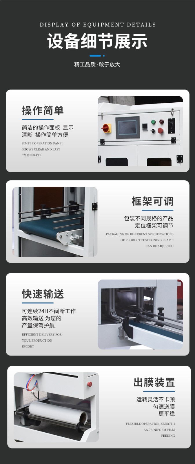 - 適用范圍廣:可以適應(yīng)多種產(chǎn)品的套膜需求。對(duì)于不同尺寸、形狀和重量的產(chǎn)品,只要在設(shè)備的規(guī)格范圍內(nèi),都可以進(jìn)行套膜。同時(shí),它也能夠使用多種類(lèi)型的包裝薄膜,如 PE、PVC 等常見(jiàn)薄膜,企業(yè)可以根據(jù)產(chǎn)品的特性和成本等因素靈活選擇薄膜材料。