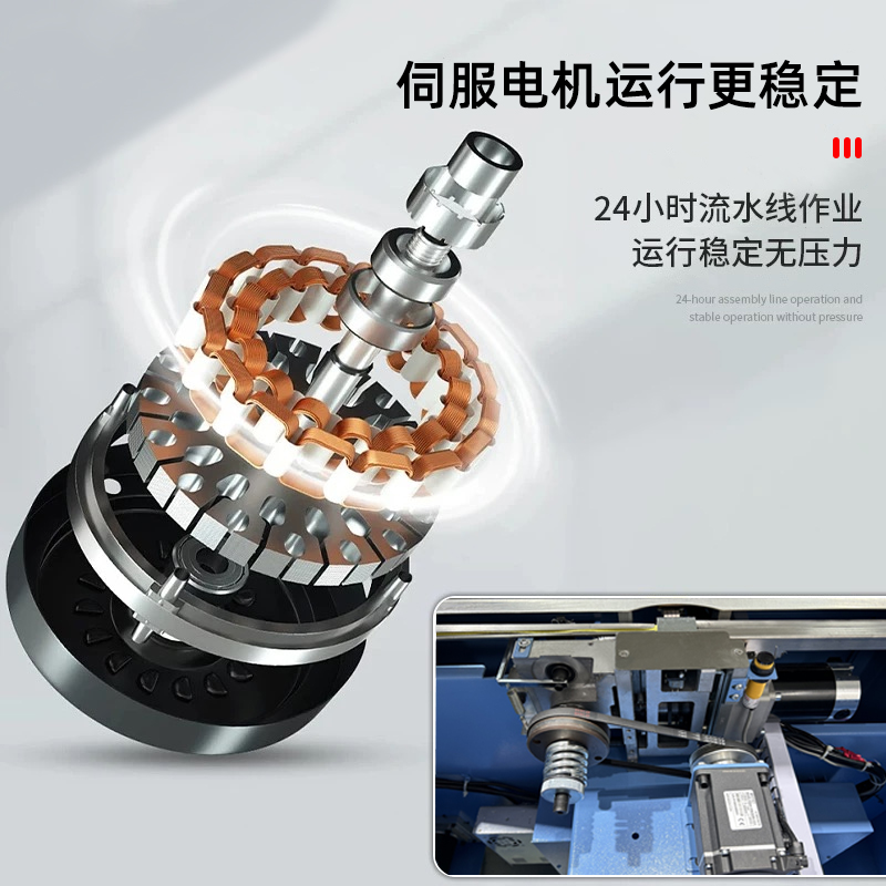 - 捆扎打包:根據預設的參數,伺服電機驅動打包帶圍繞物品進行捆扎。在捆扎過程中,伺服電機精確控制打包帶的張力,確保打包帶能夠緊密地貼合在物品表面,同時又不會對物品造成損壞。完成捆扎后,切斷機構會自動將打包帶切斷,并對末端進行熱封或其他方式的處理,防止打包帶松開。