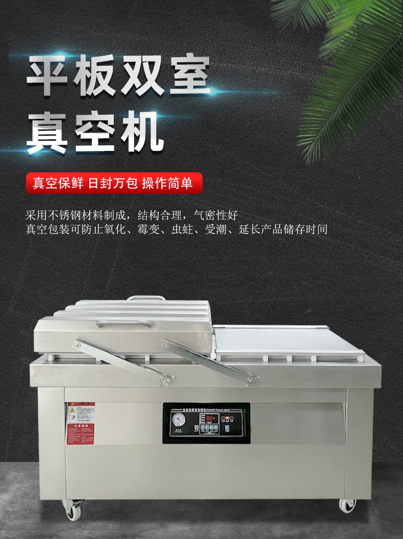 雙室真空包裝機通過 “雙真空室輪換作業” 實現抽真空與裝袋無縫銜接,核心是利用兩個獨立真空室的 “時間差并行操作”,讓設備在同一周期內同時完成 “抽真空密封” 和 “人工 / 自動裝袋”,徹底消除單室機型 “抽真空時無法裝袋” 的等待間隙,大幅提升作業效率。其具體運作邏輯和優勢可拆解為以下 3 點: